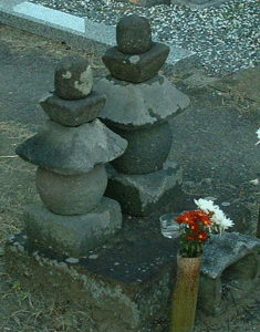 塔高の高い方(72cm)が文明元年(1469)に没した持宗公の、塔高の低い方(62cm)が文明7年(1475)に没した同夫人のものと伝えられています。